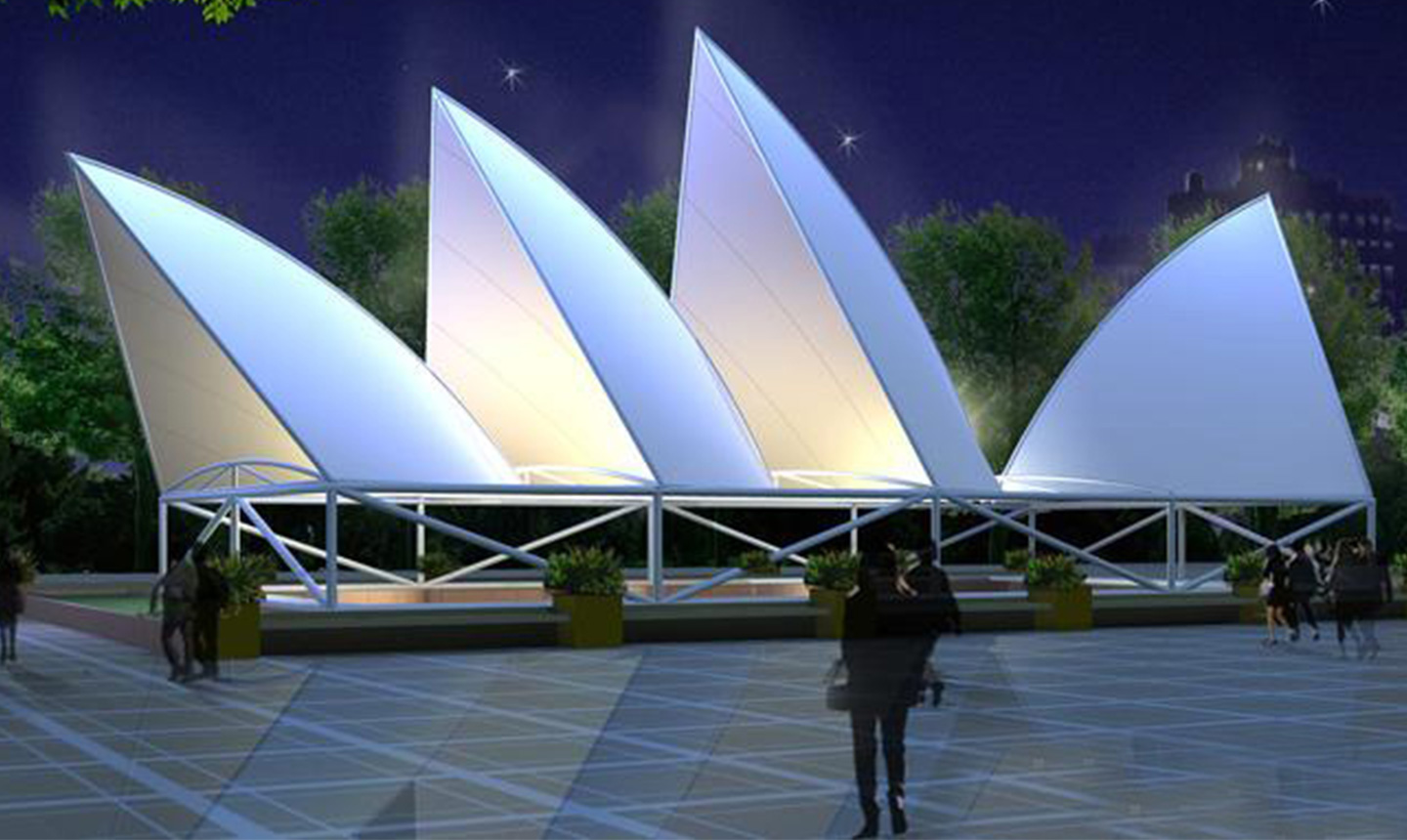 膜結(jié)構(gòu)景觀棚輕巧、別致的造型在停車場及候車廳的建設(shè)中起到重要作用,除了滿足防風(fēng)雨、防日曬等基本功能外,并有較好的標(biāo)識招攬效果,展現(xiàn)了人們個性化的一面。如果你想有陰影覆蓋或擴大你的建筑特征,在短時間內(nèi)改變,除了木頭,石頭,金屬和玻璃材料的使用,另一種合適的材料是膜結(jié)構(gòu)景觀棚)。用PVC和PTFE膜,因此他們可以以低成本設(shè)計場館的屋頂結(jié)構(gòu)所需的形狀,這些材料可以被成功地用于幾乎所有的景觀或建筑環(huán)境,而且不受任何天氣條件的影響。膜結(jié)構(gòu)景觀棚的其他優(yōu)點是制造和安裝時間短,便宜的價格,高,拉伸和橫向的優(yōu)勢。