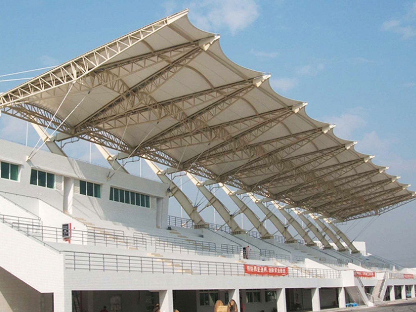 要注意膜材在不同受力情況的延展性,嚴(yán)禁過度張拉膜材。